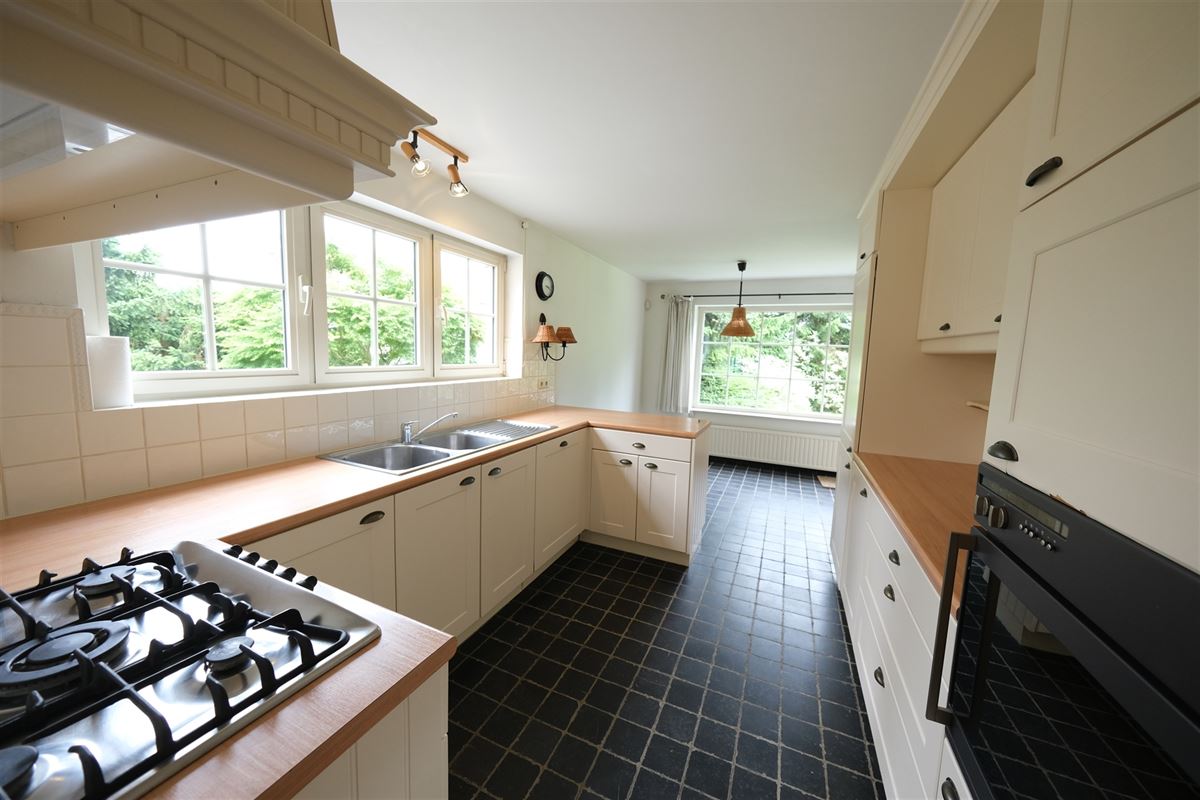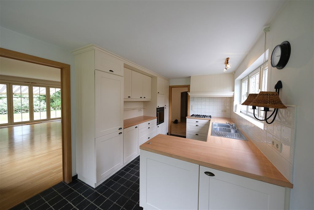 Everberg op de grens met Tervuren: Charmante goed georiënteerde villa (ZW) met mooie privatieve tuin, rustig gelegen in een doodlopende straat, op 3km van de British School en op 4km van de Deutsche Schule en de American School (vervoer met schoolbussen). Woonoppervlak 350m² op 10 are grond, 5 slaapkamers, 2 badkamers, 2 douchekamers,3 WC, ruime living met bureel en open haard, zonnetent boven terras, ingerichte keuken met ontbijthoek en zonnetent, polyvalente hobby-room, sauna, wasruimte, provisiekelder, ruimte met nieuwe Viesmann condensatie gasketel met Energie Efficiëntie A, Garage voor 2 auto's, ruime geïsoleerde zolder, Alarmsysteem, Waterverzachter, Regenwaterput, verduisterende gordijnen, EPC cat. B, tuinonderhoud in prijs inbegrepen.